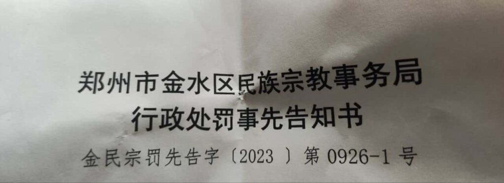 河南郑州一基督教教育机构雅博书院近日被民宗部门带队冲击,金水区民宗局发出《行政处罚事先告知书》,拟责令停止“擅自开展的宗教教育培训”,并拟罚款20万元。