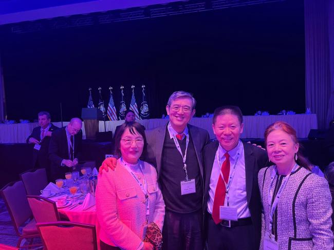 洪予健牧师夫妇和傅希秋牧师夫妇在美国祷告早餐会上。