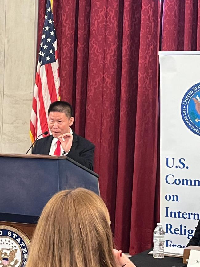 傅希秋牧师在国会宗教自由委员会的听证会上呼吁国际社会加大力度帮助遭非法关押的王怡牧师、王炳璋博士、高智晟律师等得释放重获自由。