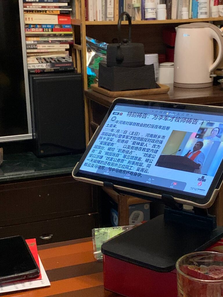18日早上,应迦南弟兄妈妈的邀请,我们去了镇上三自教堂聚会,当天现场有100多人聚会,正中间挂着十字架,墙上挂着听党话,跟党走的标语。聚会结束后我们和女传道人做了交通,指出教堂里这些党的标语等不符合圣经敬拜原则,她们说她们都懂,只是为了保住教堂可以有地方敬拜,所以他们选择了就让政府在教堂里放标语。求上帝怜悯这个教堂里的弟兄姐妹。