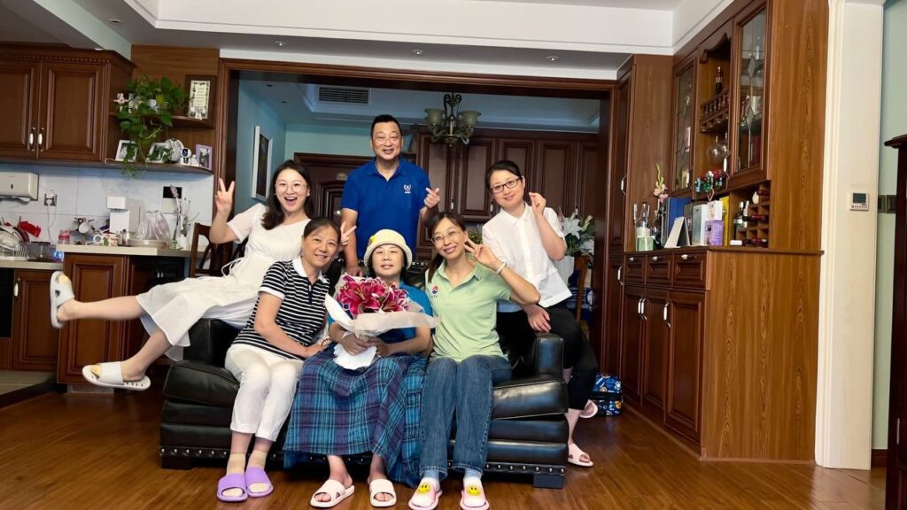 和海玲姐妹临别前,她捧着鲜花和我们拍照,希望她早日康复。