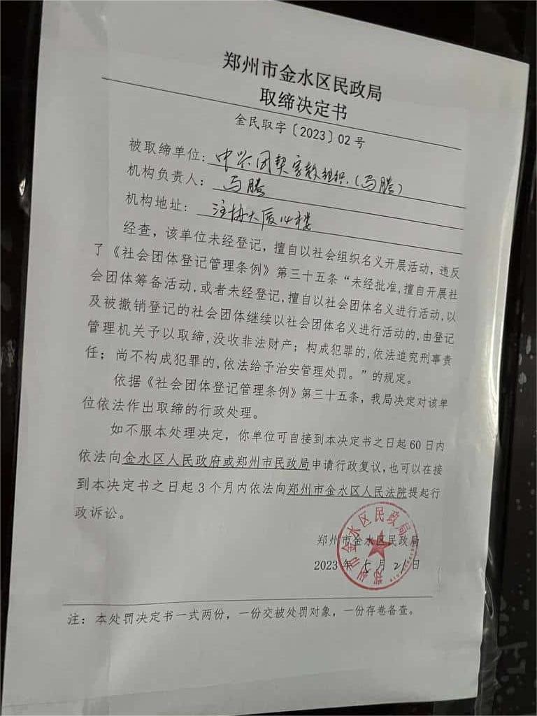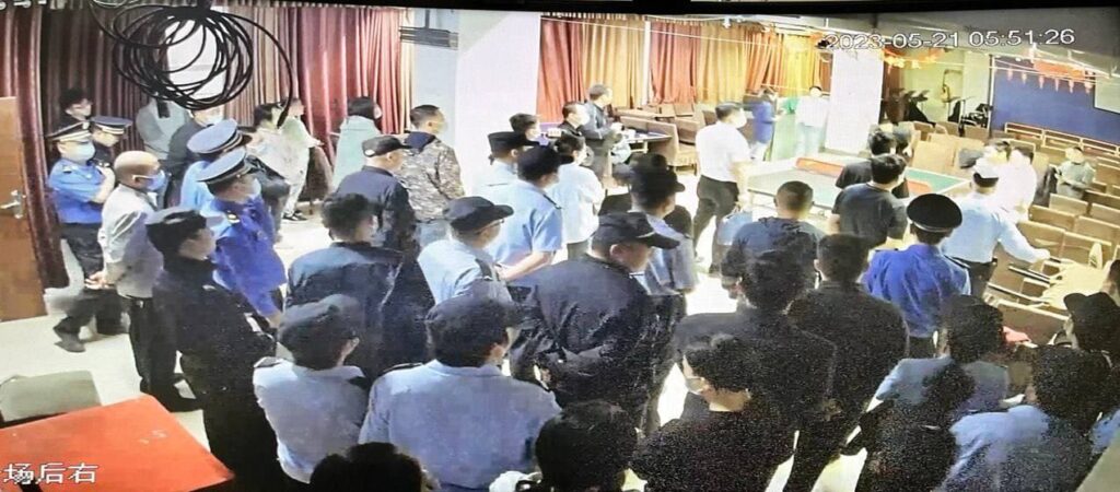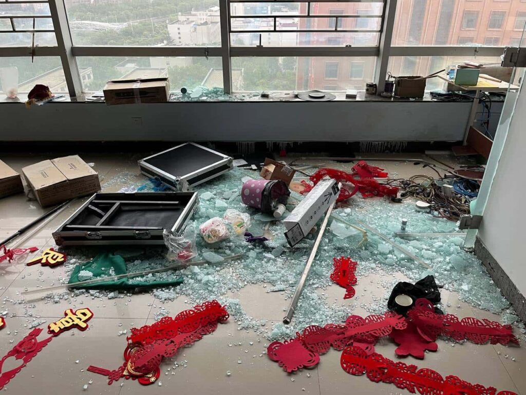 On the morning of May 21, 2023, around 5:30 AM, while about 20 members of our church were holding a Sunday service, more than 50 people from Zhengzhou’s Jinshui District Bureau of Ethnic and Religious Affairs, Civil Affairs Bureau, Beilin Road Police Station, auxiliary police, urban management officers, and Beilin Road Sub-district Office forcibly entered our meeting place. They first warned and controlled us not to take photos or videos, then announced the administrative dissolution of our church. Twenty-one brothers and sisters who attended the meeting were taken to the Beilin Road Police Station. Starting from 6 AM until 6 PM, officials from the Bureau of Ethnic and Religious Affairs led a 12-hour interrogation, using illegal methods such as intimidation and leading questions. Meanwhile, city management personnel carried out violent demolition. They forcibly removed all the church’s musical instruments (including personal ones), sound equipment, computers (personal ones), projectors, removed the air conditioners, water dispensers, took away all chairs, and took down all curtains. They smashed the podium, sound console, and doors. They brought professional locksmiths to forcibly enter personal rooms unrelated to the meeting and took away personal cash, jewelry, skincare products, toiletries, whole boxes of tissues, and various other private items. They also pasted the dissolution decision of the Jinshui District Civil Affairs Bureau and the seal of the Jinshui District Bureau of Ethnic and Religious Affairs on the door.